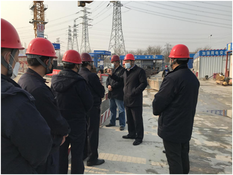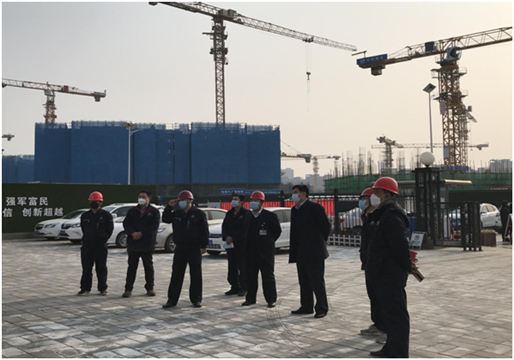 随后,陈董事长一行来到项目施工现场,听取了项目负责人关于疫情防控期间作业密度安排、劳务人员管理、安全文明施工及施工进度等方面的情况汇报。在充分肯定项目部工作的同时,陈董事长嘱咐大家,目前全国正处于疫情防控的关键时期,复工复产带来的疫情防控压力不容小觑,项目部要充分认识做好疫情防控工作的极端重要性和紧迫性,严格落实各项防控措施,强化管理,确保责任到人、任务到点,确保疫情防控各项工作有力有效有序推进,努力争取防疫生产双胜利。